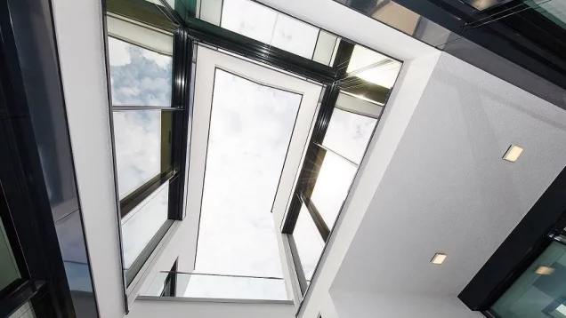An das großzügige Hauptgebäude mit Satteldach schließt sich im Erdgeschoss der kubistische Anbau an, der vielfältige Nutzungsmöglichkeiten bietet. Durch die Teilung der Dachflächen entsteht das Herzstück des Hauses: das Atrium im Stile römischer Architektur. Bodentiefe Fenster und Schiebetüren verbinden drinnen mit draußen und sorgen für reichlich Lichteinfall. Hier trifft man sich gerne!