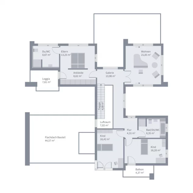 Ob Gästezimmer, Hobbyraum, Atelier oder zusätzliches Kinderzimmer - ein weiterer Raum im Obergeschoss bietet Gestaltungsfreiheit für jede Lebensphase. Dieses Haus passt sich an Ihre Wünsche an - nicht umgekehrt.