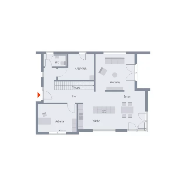 Wer sich dem Purismus verschrieben hat, wird dem Kubus mit Flachdach kaum widerstehen können. Als Hommage an die Bauhausära vereint die Stadtvilla schnörkellose Ästhetik mit kompromissloser Funktionalität. Die reduzierte Architektur wird durch den Versatz und die Signalkraft der bauhaustypischen Farben bewusst unterbrochen. Die klare Formgebung findet sich auch im Innenbereich wieder. Der große Wohn-, Koch- und Essbereich ist offen und hell, nur ein Wandelement dient der optischen Unterteilung. Im Obergeschoss befindet sich der äußerst großzügige Elternbereich. Doch auch für Kinder, Büro und Gäste ist reichlich Platz im Black Label 13.