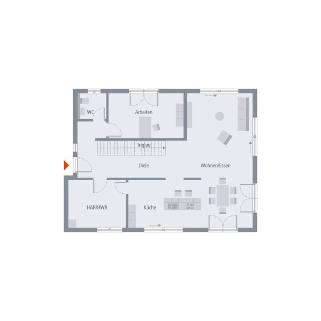 Der Eingang führt in eine Diele und öffnet den Wohnbereich direkt.