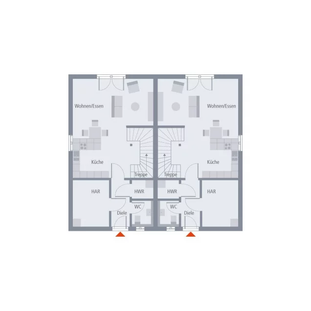 Das 2 ½-geschossige Raumwunder besticht durch großflächige Raumaufteilung auf drei Ebenen. Wohnen/Kochen, Kinder/ Bad, Eltern/Büro - für jeden Bereich gibt es eine eigene Etage. Die Grundrisse sind gespiegelt und identisch. Für Individualität und Persönlichkeit sorgen die Bewohner. Alle Räume bestechen durch Größe und Helligkeit. Unter dem nur leicht gewinkelten Pultdach präsentieren sich lässige 1,70 m Kniestockhöhe im Dachgeschoss. Absolutes Highlight hier: die raumgroßen Dachterrassen für ungestörte Sonnenstunden unter freiem Himmel.