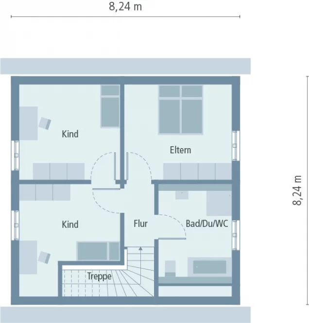 Bauherren mit geringerem Raumbedarf oder kleinem Grundstück finden mit Design 8 die perfekte Lösung. Der Satteldachklassiker in Kubusform überzeugt mit hohem Wohnkomfort und lässt keine Wünsche offen. Größe und reichlich Freiraum offeriert der im Erdgeschoss offen gehaltene Grundriss. Drinnen und draußen scheinen hier förmlich zu verschmelzen, denn gleich vier Türen ermöglichen einen direkten Zugang aus dem Wohn- in den Außenbereich. Und auch in der oberen Etage hält das Tageslicht dank bodentiefer Fenster rundum Einzug. Raumnutzung und -aufteilung sind flexibel: Schlafen, Büro, Kinder, Gäste? Alles ist möglich. Dieses projektierte Premium-Fertighaus wird für Sie in der Energieeffizienzklasse A+ nach Ihren Wünschen auf einer Bodenplatte gebaut. Natürlich ist auch der Bau eines Vollkellers, als Nutz- oder Wohnkeller, gegen Aufpreis möglich.