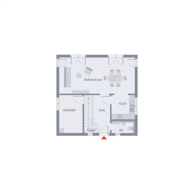 Im Erdgeschoss erwartet Sie ein großzügiger, lichtdurchfluteter Wohn-Ess-Bereich, in dem das Leben pulsiert. Hier können Sie sich vorstellen, wie die Sonne durch die großen Fenster strahlt und Sie gemeinsam mit Ihren Liebsten den Tag genießen. Der direkte Zugang zum Garten lädt dazu ein, nach einem langen Arbeitstag im Freien zu entspannen oder mit den Kindern die Zeit im Grünen zu verbringen - der Garten wird hier zu Ihrem zweiten Wohnzimmer. Wäre es nicht überwältigend, in einem solchen Raum zu leben, der das Herz Ihrer Familie bildet? Die angrenzende Küche ist ebenfalls ein echtes Highlight, perfekt für kulinarische Abenteuer und gemeinsames Kochen. Und dank des mehr als 10 m² großen Hauswirtschaftsraums wird der Alltag einfach, übersichtlich und organisiert - genau das, was eine Familie braucht.