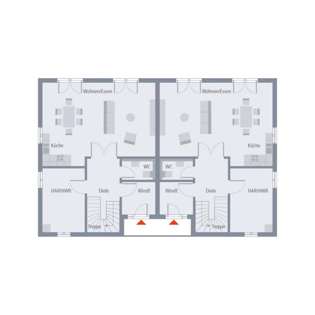Das ZweiRaum-Konzept hat viele Vorteile: geteilte Kosten, geliebte Familienmitglieder oder gute Freunde Tür an Tür, zusätzliche Einnahmen bei Vermietung. Auch ZweiRaum 12 lässt alle Optionen offen. Die jeweils rund 140 m² großen Haushälften bieten Raum für alle Ansprüche. Linke oder rechte Seite? Identische Grundrisse machen die Entscheidung leicht und in jedem Haus steckt 100 % OKAL. Schon beim Betreten spürt man perfektionierte Funktionalität. Der rückversetzte Eingang mit praktischem Windfang ermöglicht trockenen Zutritt und hält Schmutz aus dem Wohnbereich fern. Und auch die restliche Planung lässt keine Wünsche offen. Qualität, die man spürt.