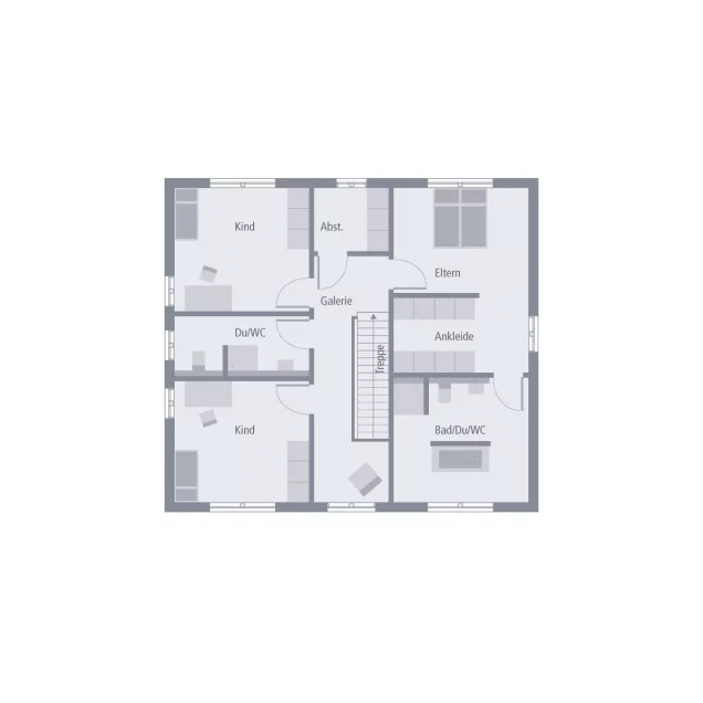 Groß, zeitlos-elegant und bis ins kleinste Detail durchdacht - das ist unsere Stadtvilla 16. Auf einer Fläche von mehr als 180 m2, verteilt auf zwei Ebenen, ist ausreichend Platz zum Leben, Arbeiten und Relaxen. Zentraler Ort der Begegnung für Familie und Freunde ist der rund 50 m² große Wohn-Ess-Koch-Bereich. Große Fensterfronten ermöglichen einen direkten Zugang zum Garten und sorgen für maximalen Lichteinfall. Besonders praktisch: Direkt an die Küche schließen sich eine Speisekammer sowie der große Hauswirtschaftsraum an. Außerdem im Erdgeschoss: komfortables Arbeitszimmer und Gäste-WC. Über den offenen Dielenbereich geht es ins Obergeschoss und damit in den Rückzugsort für die Familienmitglieder. Die Eltern verfügen hier über eine Wohlfühloase mit großem Schlafbereich, separatem Ankleidezimmer und sich unmittelbar anschließendem Badezimmer mit Wanne, Dusche und WC. Gegenüber: das Reich der Kinder. Die beiden geräumigen Zimmer werden durch ein eigenes Bad voneinander getrennt. Abgerundet wird das Raumangebot durch einen praktischen Abstellraum.