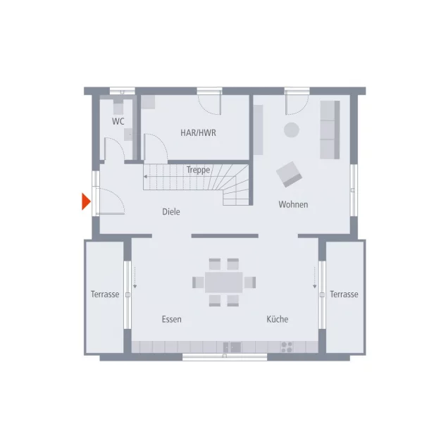 Pult 17 - schon von außen ein echtes Highlight! Die Fassade besticht durch ihre moderne, durchdachte und außergewöhnliche Architektur. Durch den besonderen Grundriss mit einem eingerückten Bereich entstehen sowohl auf der Vorder- als auch auf der Rückseite zwei windgeschützte Terrassenbereiche. Extravaganz und Eleganz in Vollendung. Das trifft auch auf das Innere zu: Hier überzeugt die durchdachte Raumaufteilung ebenso wie der großzügige Schnitt mit einem großen Wohn-Koch-Bereich und sich anschließendem Wohnzimmer. Komplettiert wird das Erdgeschoss durch einen Hauswirtschaftsraum sowie ein Gäste-WC. Über die zentral gelegene Treppe erreicht man das Obergeschoss mit Galerie, Elternschlafzimmer, einem großen Badezimmer mit Badewanne und Dusche sowie zwei Kinderzimmern. Ein absolutes Highlight: der große Balkon mit edlem Glasgeländer.