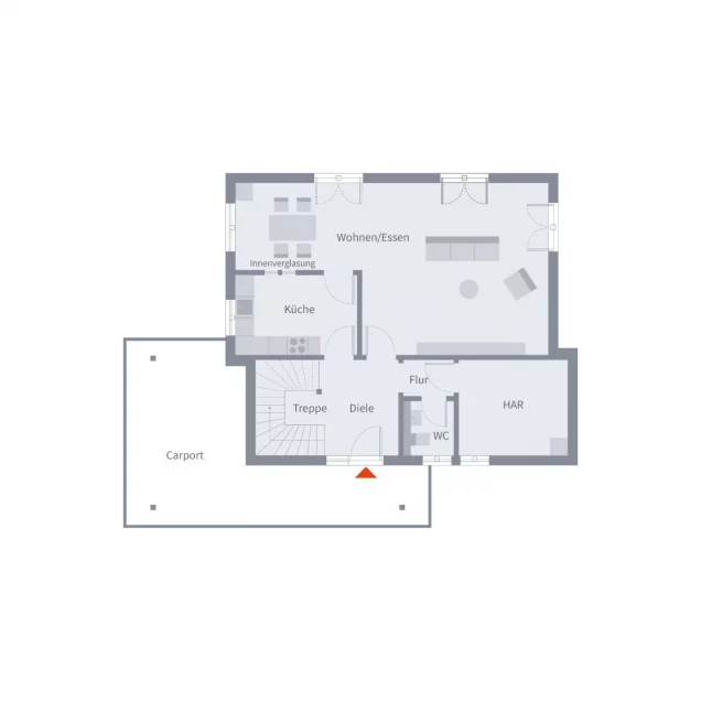 Bei kleinem Grundstück oder geringem Raumbedarf sind intelligente Lösungen gefragt, die durch eine raffinierte Aufteilung punkten. Das Designhaus 18.3 bietet eine Gesamtwohnfläche von rund 137 m² auf zwei Etagen, die bis in den kleinsten Winkel genau durchdacht wurden. Das elegante Einfamilienhaus verfügt über ein Satteldach mit Schleppdach, welches sich ideal als Carport bzw. Stellplatz für ein Fahrzeug eignet. Hohen Wohnkomfort verspricht vor allem der offen gehaltene Wohn-Ess-Bereich, der dank bodentiefer Fenster noch großzügiger wirkt und den Blick ins Grüne ermöglicht. Im Erdgeschoss befinden sich weiterhin die geschlossene Küche sowie Hauswirtschaftsraum und kleines Bad. Oben im Dachgeschoss sind Schlafzimmer, Kinderzimmer sowie Bad inklusive Badewanne, Dusche und WC direkt erreichbar und ermöglichen eine flexible Raumaufteilung.