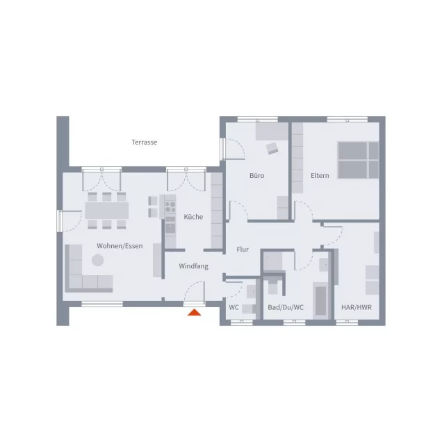 Dieser Bungalow zeigt, wie Architektur auf kleiner Fläche Größe entfalten kann. Auf rund 125 m² verbinden sich klare Linien, stimmige Proportionen und ein offenes Raumkonzept zu einem Zuhause, das Leichtigkeit und Geborgenheit vereint. Im zentralen Wohn-, Ess- und Kochbereich fließen die Funktionen ineinander - hier entstehen Momente des Miteinanders ebenso wie Raum für Ruhe. Das Schlafzimmer bietet einen geschützten Rückzugsort, ergänzt durch ein flexibles Zimmer, das sich neuen Lebenssituationen anpasst. Ein modernes Bad und ein praktischer Hauswirtschaftsraum runden das Konzept ab. So entsteht ein Ort, der mit seinen Bewohnern wächst und bleibt - beständig im Charakter, zeitlos im Design.