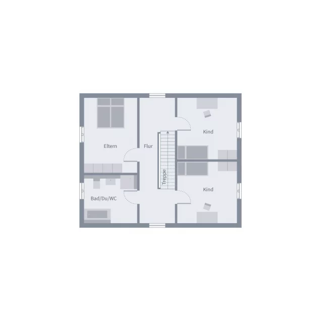 Das Design 10.2 steht für modernes Wohnen mit Charakter. Auf 140 m² verbindet sie Design und Alltag auf harmonische Weise. Der offene Wohn- und Essbereich bildet das Herzstück - hell, großzügig und mit einer geraden Treppe, die als Designelement den Raum gliedert. Büro, Gäste-WC, Hauswirtschaftsraum und Speisekammer machen das Erdgeschoss ebenso funktional wie stilvoll. Im Obergeschoss empfängt ein lichtdurchfluteter Flur, der zu den privaten Rückzugsorten führt: ein Elternzimmer, zwei Kinderzimmer und ein großzügiges Familienbad. Unter dem klassischen Satteldach entsteht ein Zuhause, das Ästhetik und Geborgenheit vereint.