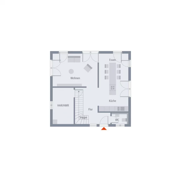 Geschmackvoll, lichtdurchflutet und offen - so lässt sich unser Haus Design 11 charakterisieren. Unter dem zeitlos-eleganten Satteldach laden rund 135 m² Wohnfläche zum Leben, Wohlfühlen und Träumen ein. Die offene Architektur im Erdgeschoss vermittelt ein Gefühl von Weite, ohne dabei an Gemütlichkeit und Behaglichkeit einzubüßen. Dafür sorgt die besondere Raumeinteilung: Die geräumige Diele geht - lediglich getrennt durch einen kleinen Vorsprung - direkt in den Koch- und Ess-Bereich über. Und der besticht nicht nur durch seine Größe, sondern auch durch seine Helligkeit. Dafür sorgen zahlreiche Fenster, die einen direkten Blick in den Garten gewähren. Auch das Wohnzimmer ist unmittelbar von der Diele aus zugänglich und mit seinen knapp 20 m² ein echter Wohlfühlort. Ebenfalls Parterre: Hauswirtschaftsraum sowie Gäste-WC. Über die Diele führt eine halbgewendelte Treppe in den Bereich, in dem Erholung und Entspannung im Fokus stehen. Hier befinden sich neben dem Schlafzimmer für die Eltern noch zwei Kinderzimmer sowie ein großes Bad. So geht stilvoll Wohnen.