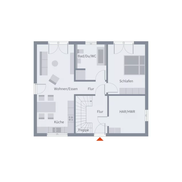Zwei Wohnwelten, ein Zuhause: Das ZweiRaum 19.Dieses moderne Mehrfamilienhaus überzeugt durch ein cleveres Konzept auf rund 151 m². Ob Erd- oder Dachgeschoss - beide Wohneinheiten bieten mit ihren offenen Wohn- und Kochbereichen viel Raum für Gemeinschaft. Jede Wohnung verfügt über ein eigenes Schlafzimmer sowie ein komfortables Bad mit Dusche und Wanne. Ein besonderes Plus im Dachgeschoss: Ein zusätzliches Kinderzimmer macht diese Einheit perfekt für die kleine Familie. Ein gemeinsam genutzter Hauswirtschaftsraum im Erdgeschoss rundet das flexible Wohnerlebnis ab.