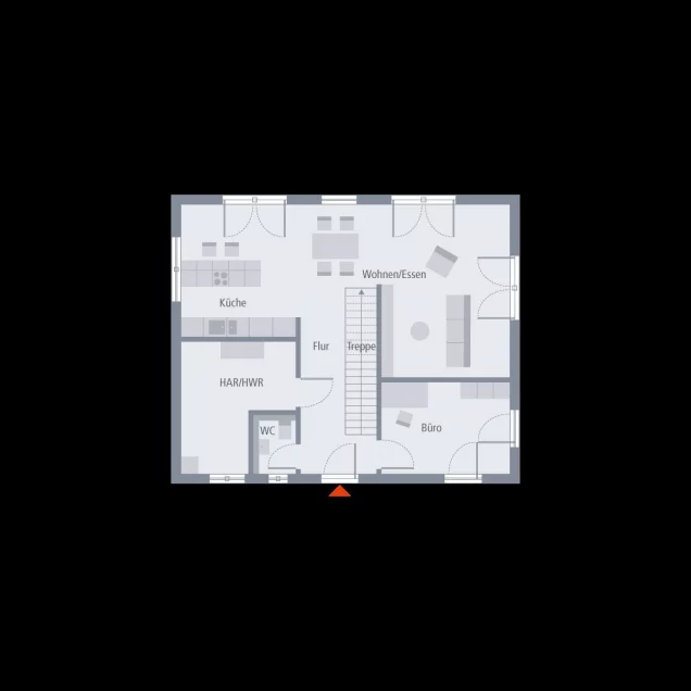 Die Stadtvilla 10 zeigt, wie modern und wohnlich ein Walmdach sein kann. Es verleiht dem Haus eine elegante Ausstrahlung - und sorgt ganz praktisch dafür, dass im Obergeschoss keine Dachschrägen den Raum begrenzen. Auf rund 78 m² im Erdgeschoss treffen Gemeinschaft und Funktionalität aufeinander: Der offene Wohn-, Ess- und Kochbereich öffnet sich zur Terrasse und holt das Grün direkt ins Haus. Büro, Hauswirtschaftsraum und Gäste-WC liegen praktisch auf der Eingangsseite. Oben finden Eltern und Kinder ihren Rückzugsort: zwei gleich große Kinderzimmer, ein großzügiges Bad und ein Elternbereich, der Ruhe ausstrahlt. Ein Zuhause mit Stil und Herz.