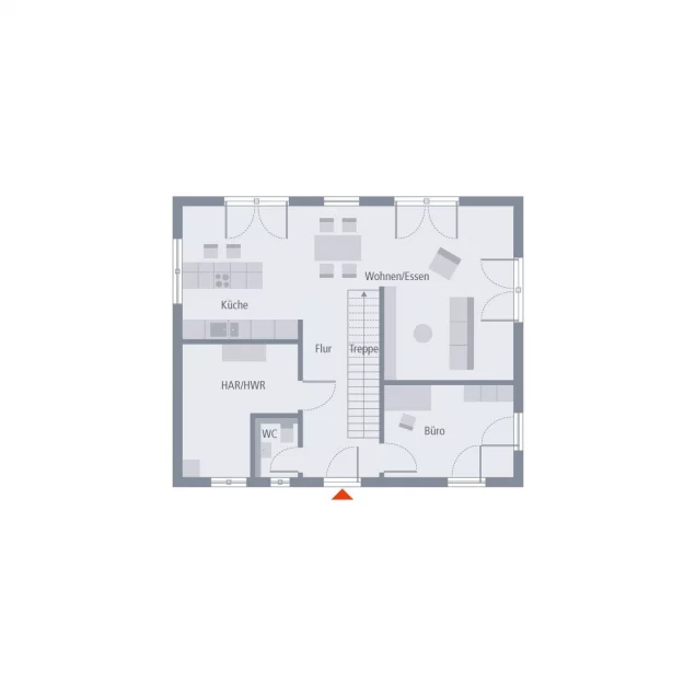 Ein Walmdach, das Eleganz ausstrahlt und einen edlen, beinahe herrschaftlichen Eindruck vermittelt. Dies trifft auch auf unsere Stadtvilla 10 mit Walmdach zu. Ein großer Vorteil dieser Dachform ist, dass im Obergeschoss keine Dachschrägen vorhanden sind, was zahlreiche Möglichkeiten für die Möbelplatzierung eröffnet. Doch diese Stadtvilla bietet noch viele weitere kleine und große Ausstattungs- und Grundrissdetails. Im etwa 78 Quadratmeter großen Erdgeschoss gibt es eine räumliche Zweiteilung: die Zimmer zum Entspannen und Verweilen befinden sich auf der Gartenseite, während die funktionalen Räume zur Straßenseite ausgerichtet sind. Konkret heißt das: Vom großzügigen Wohn-Ess-Koch-Bereich gelangt man direkt auf die Terrasse und somit ins Grüne. Büro, Hauswirtschaftsraum und Gäste-WC sind hingegen gegenüberliegend und direkt von der Diele aus zugänglich. Im Obergeschoss findet man neben dem Elternschlafzimmer zwei gleich große Kinderzimmer sowie ein geräumiges Badezimmer mit Badewanne, Dusche und WC.