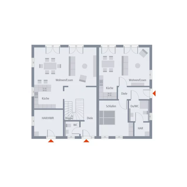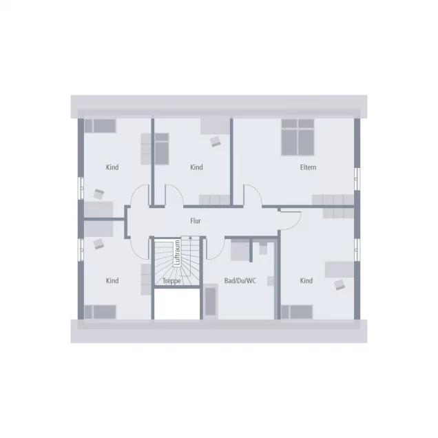 Das Einfamilien-Satteldachhaus verteilt sich großzügig auf 1 ½ Etagen. Ein halbes Untergeschoss und ein volles Obergeschoss bieten für Familien mit bis zu vier Kindern reichlich Raum zur individuellen Entfaltung. Schon der offen gestaltete Wohn-, Koch- und Essbereich deutet auf die großzügigen Raumverhältnisse hin. In der oberen Etage warten das 25 m² große Eltern- und vier weitere Zimmer auf Sie. Im Erdgeschoss befindet sich die zusätzliche Einliegerwohnung. Mit eigenem Zugang und voller Ausstattung bietet sie vielfältige Nutzungsmöglichkeiten: sich verändernde Familiensituationen, Ferienwohnung, Business oder, oder ... Der Gestaltungsfreiheit sind keine Grenzen gesetzt.