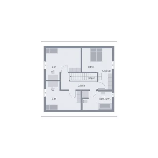 Über die mittig angeordnete Treppe gelangen Sie ins Obergeschoss - ein Rückzugsort für die ganze Familie. Die Eltern genießen ein großzügiges Schlafzimmer mit separatem Ankleideraum, während zwei große Kinderzimmer viel Platz zum Spielen, Lernen und Träumen bieten. Ein geräumiges Badezimmer mit Dusche, Badewanne und WC rundet das Raumangebot auf dieser Ebene perfekt ab.