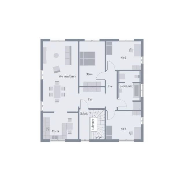 Unsere elegante Stadtvilla mit Pyramidendach besticht durch mediterrane Leichtigkeit und flexible Wohnraumnutzung. Während die Bauherren eine Ebene selbst bewohnen, bietet die zweite Platz für Eltern, erwachsene Kinder und Business. Oder wollen Sie lieber doch vermieten? Das ausgelagerte Treppenhaus macht eine getrennte Nutzung möglich. Beide Etagen garantieren mit 2,80 m Raumhöhe maximalen Komfort und Wohnen der besonderen Art. Die Grundrisse sind gut durchdacht und bis in den letzten Winkel perfektioniert. So wird jeder Quadratmeter optimal genutzt. Für Rundum-Lichteinfall sorgen bodentiefe Fenster.