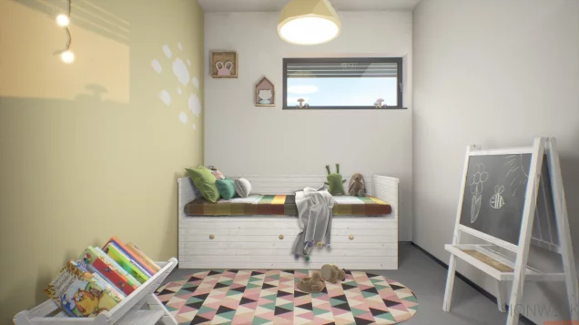 Ein Schlafraum ist zurückgesetzt angeordnet.