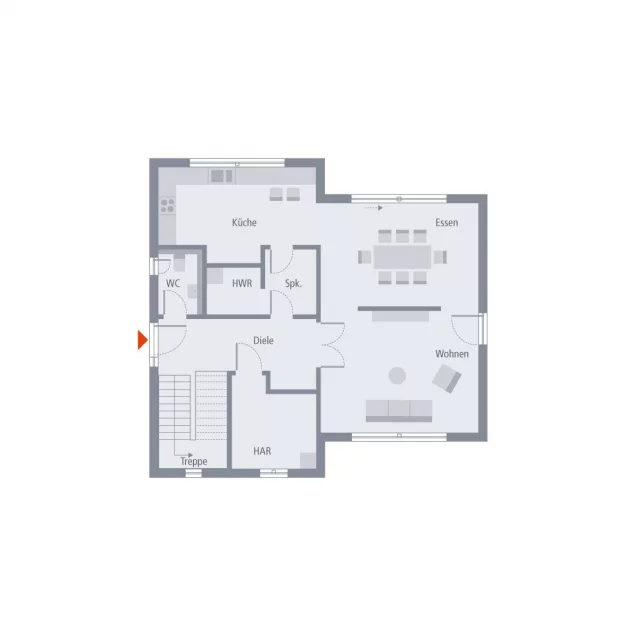 Man betritt das Haus und gelangt in einen offenen Bereich.