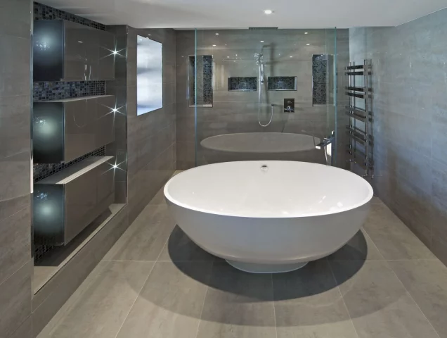 Ein Bad liegt nahe bei den Räumen.