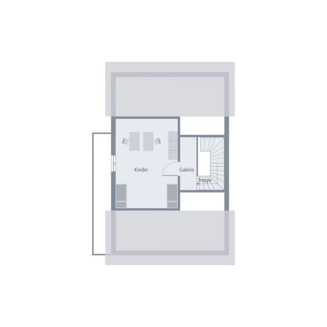Die Fassade des Design 27 besticht durch einen architektonisch eindrucksvollen und zugleich durchdachten Vorsprung im vorderen Bereich. Im hinteren Bereich befindet sich eine überdachte Aussparung, die beispielsweise als Terrasse dienen kann. Der Wohn-Ess-Kochbereich ist offen und lichtdurchflutet. Von hier führen gleich zwei Türen nach draußen. Komplettiert wird das Raumangebot im Erdgeschoss durch einen Hauswirtschaftsraum sowie durch ein Gäste-WC. Im ersten Obergeschoss beträgt die Stockhöhe zwei Meter, was das Stellen von Schränken problemlos möglich macht. Hier befinden sich drei große Zimmer, ein Ankleideraum sowie ein Bad. Highlight dieser Etage ist sicherlich der offene Galerie-Bereich, von wo eine Treppe ins Dachgeschoss führt. Hier wird nicht nur die Galerie fortgesetzt, es befindet sich auch noch ein weiteres, knapp 24 m² großes Zimmer auf der Ebene - für verschiedenste Nutzungsmöglichkeiten.