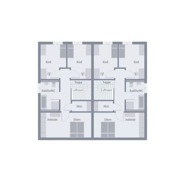 Perfekt in jedes ländliche und urbane Wohnumfeld fügt sich unser Zinshaus 4 ein. Das klassische Stadthaus mit zeitlos-elegantem Walmdach verfügt über zwei identische Wohnungen, die sich jeweils über zwei Etagen erstrecken. Besonders praktisch: der von außen zugängliche, gemeinsam genutzte Hauswirtschaftsraum. Über zwei separate Eingänge und einen unmittelbar dahinter gelegenen Windfang geht es in die mehr als 110 m² große Wohnung. Im vorderen Bereich befinden sich ein Gäste-WC sowie ein Abstellraum. Der sich anschließende Flur führt direkt in das große und lichtdurchflutete Wohn-Ess-Zimmer, an den sich eine geräumige Küche anschließt. Eine Wendeltreppe verbindet die beiden Stockwerke miteinander und führt in den Erholungsbereich für die ganze Familie. Hier ist Platz für zwei Kinderzimmer sowie ein geräumiges Elternschlafzimmer mit einem separaten Ankleidebereich. Ein Badezimmer mit Wanne, Dusche und WC rundet das Raumangebot im Obergeschoss ab. Zinshaus 4: Zeitlos-elegante Architektur und maximaler Wohnkomfort.