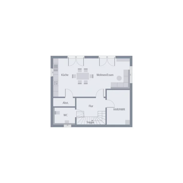 Hanglagen - sie strahlen Charme aus, bringen jedoch auch besondere Herausforderungen für Bauherren mit sich. Genau für solche Herausforderungen wurde dieses Haus entworfen. Dank seiner einzigartigen Architektur fügt es sich mühelos in unebenes Gelände ein, ohne dabei Wohnkomfort und Ästhetik zu verlieren. Die Wohnfläche von 184 m² erstreckt sich über drei Etagen: Das Kellergeschoss fungiert nicht als klassisches Untergeschoss, sondern als idealer Treffpunkt für die gesamte Familie. Hier befindet sich der großzügige, lichtdurchflutete und einladende Wohn-Ess-Kochbereich mit Blick auf den Garten. Besonders praktisch ist die angrenzende kleine Speisekammer an die Küche. Auf dieser Ebene gibt es zudem einen geräumigen Hauswirtschaftsraum. Das Erdgeschoss ist ein wahres Paradies für Kinder, mit zwei großen Schlafzimmern, einem Badezimmer und einem Gäste-WC. Schließlich ist das Dachgeschoss das Rückzugsgebiet der Eltern, die hier genügend Platz zum Schlafen, Arbeiten, Entspannen und für persönliche Pflege finden. So wird Wohlfühlen mit einem herrlichen Panoramablick kombiniert.