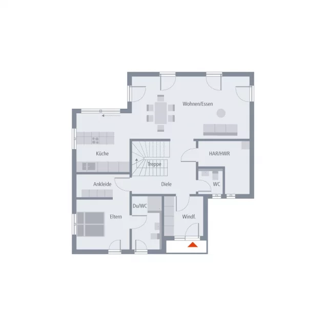 Der Wohn- und Essbereich liegt offen zur Seite.