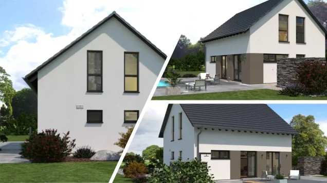Design 9 überzeugt mit ansprechender Fassadengestaltung und einem offenen Wohnkonzept. Im Erdgeschoss ist der Eingangsbereich mit Dusch-WC und Hauswirtschaftsraum vom restlichen Wohnbereich geschickt abgetrennt. Die große Diele mit integrierter Treppe lässt schon beim Betreten Großzügigkeit erahnen. Der offene Wohn- und Kochbereich besticht mit Größe und Rundum-Lichteinfall. Praktisch: Die an die Küche angeschlossene Speisekammer. Die obere Etage ist vom Boden bis in die Dachspitze offen gestaltet. Der hiermit erzielte Studiocharakter verleiht allen Zimmern ein ganz besonderes Wohngefühl. Atmosphäre, die man spüren kann. Der firsthohe Ausbau und bodentiefe Fenster machen somit das Dachgeschoss zum absoluten Lieblingsplatz.