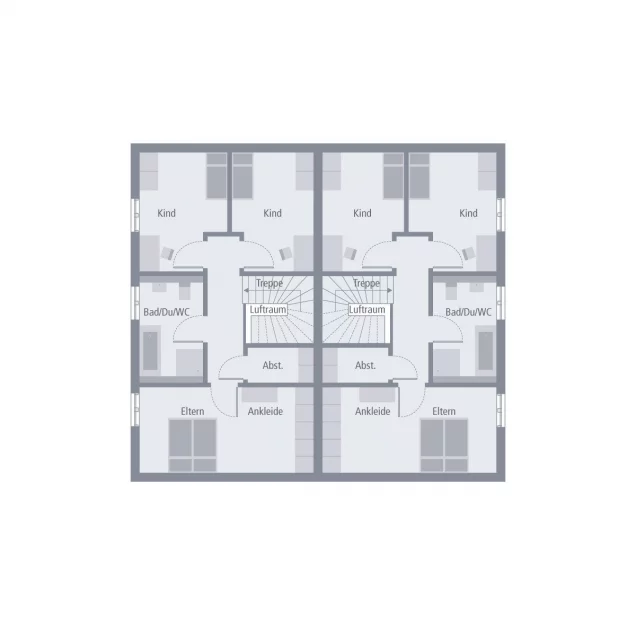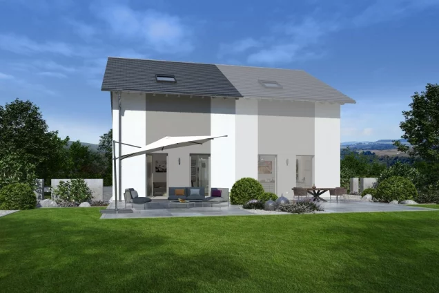 Unter einem Dach leben und dennoch den Komfort eines Einfamilienhauses genießen - das ist in unserem Zinshaus 1 möglich. Unter dem zeitlos-eleganten Satteldach befinden sich zwei baugleiche Wohneinheiten, die sich jeweils über zwei Etagen erstrecken und die über zwei separate Eingänge verfügen. Über einen Windfang, an den sich Gäste-WC und Abstellraum anschließen, und einen Flur mit Treppenhaus führt der Weg an der Küche vorbei ins Wohn-Ess-Zimmer, das mit einer Größe von 22 qm und direktem Zugang zum Garten wohnlicher Mittelpunkt ist. Ebenfalls im Erdgeschoss: der große Hauswirtschaftsraum, der von beiden Parteien über eine außerhalb des Hauses gelegene Tür zugänglich ist. Im Obergeschoss befinden sich die Rückzugsräume für die ganze Familie. Zwei Kinder haben hier Raum zum Spielen, Lernen und Schlafen. Gegenüber befindet sich das Schlafzimmer der Eltern - mit einem direkt angegliederten Ankleidezimmer. Abgerundet wird das Raumangebot im Obergeschoss durch ein großes Badezimmer mit Wanne, Dusche und WC.