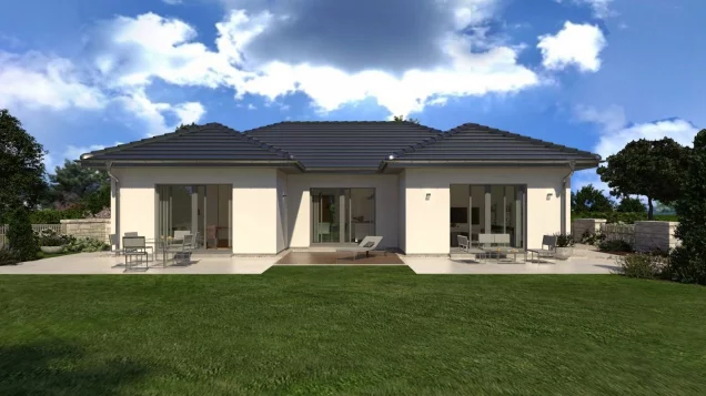 Dieser Bungalow ist in einer Ausführung mit Flach- oder Walmdach erhältlich.