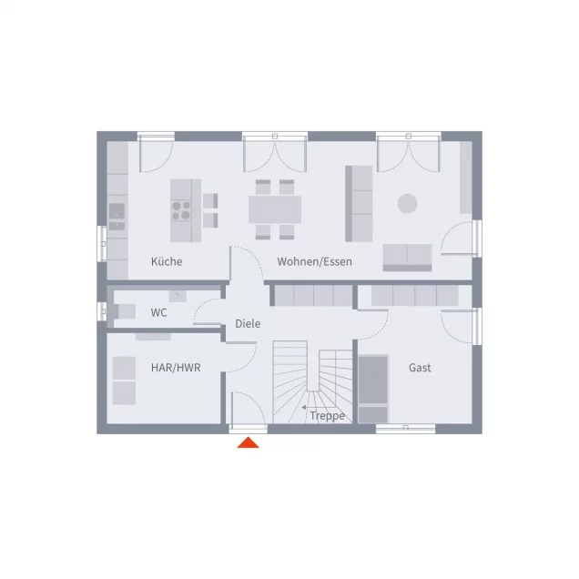 Mit 164 m² bietet die Stadtvilla 12.2 viel Platz für das Leben in all seinen Facetten. Der Eingangsbereich empfängt offen und freundlich, eine Garderobennische sorgt für Ordnung. Im Herzen des Hauses liegt der große Wohn- und Essbereich - hell, einladend und mit Raum für gemeinsames Kochen, Spielen und Ankommen. Das Gästezimmer kann ebenso gut als Büro genutzt werden, Hauswirtschaftsraum und Gäste-WC ergänzen den Alltag praktisch. Im Obergeschoss wartet die Rückzugsoase der Eltern mit eigener Ankleide, zwei helle Kinderzimmer und ein großzügiges Familienbad, das Entspannung zum Teil des Tages macht. Ein Haus, das Freiraum schafft - für jedes Familienmitglied.