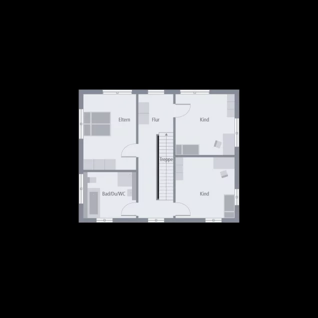 Das Obergeschoss bietet Ruhe und Rückzug: Zwei gleich große Kinderzimmer schaffen faire Voraussetzungen für die Familie, ergänzt durch ein komfortables Familienbad. Der Elternbereich ist bewusst separiert und vermittelt Privatsphäre und Gelassenheit - ein Ort zum Ankommen nach einem Tag in der Stadt.