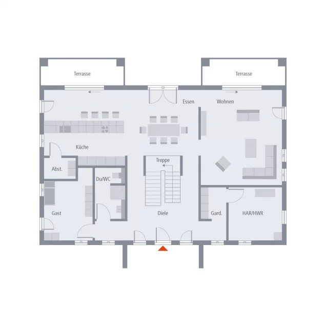 Herrschaftliches Wohnambiente auf einer Fläche von rund 300 m² - das ist unsere Stadtvilla Alabama. Angelehnt an die typische Südstaaten-Architektur vereint dieses Einfamilienhaus klassische und moderne Elemente auf eindrucksvolle Weise: Parterre befindet sich der große Wohn-Ess-Bereich mit sich angrenzendem Wohnzimmer. Drei große Türen ermöglichen einen direkten Zugang zum Garten und sorgen zudem für maximalen Lichteinfall. Besonders praktisch: Direkt neben der Küche befindet sich ein kleiner Abstellraum. Außerdem im Erdgeschoss: Gästezimmer und Gäste-WC sowie ein geräumiger Hauswirtschaftsraum. Über die zentral im Dielenbereich gelegene Treppe führt der Weg ins Obergeschoss, das in Eltern- und Kinderbereich unterteilt ist. Das Reich der Eltern besteht aus einem großen Schlafzimmer mit Ankleideraum und sich direkt anschließendem Bad mit abgetrenntem Toilettenbereich. Gegenüber: der Rückzugsort für die Kinder. Zwei Zimmer sowie ein von beiden Seiten zugängliches Bad stehen hier zur Verfügung. Zudem garantieren drei Balkone Sonnengenuss zu jeder Tageszeit.