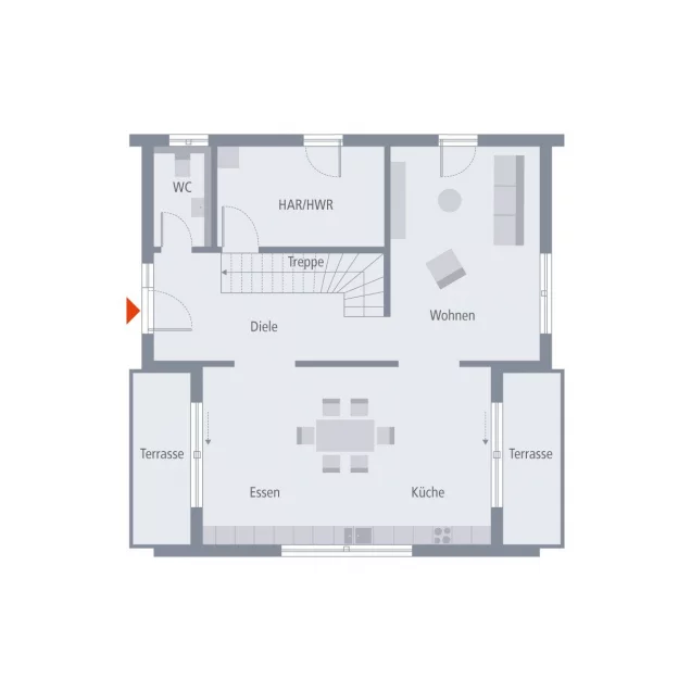 Hauswirtschaftsraum und Gäste-WC liegen im Erdgeschoss.