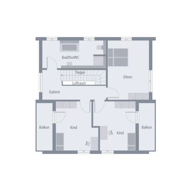 Zwei Kinderzimmer ordnen sich entlang derselben Linie an.