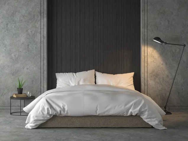 Ein Schlafraum liegt in direkter Nähe zum Wohnbereich.