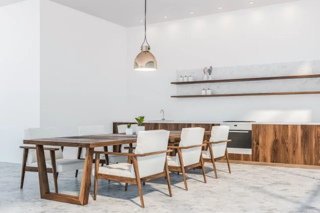 Von hier öffnet sich der Wohn-Ess-Koch-Bereich.