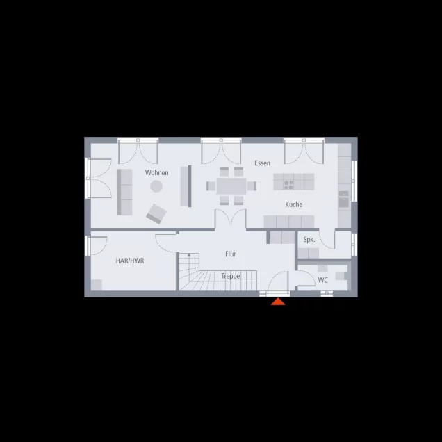 Viel Raum, um Ihre Wohnträume zu verwirklichen, hält das Design 5 bereit. Auf einer Fläche von rund 162 m² bieten sich Ihnen vielfältige Nutzungsoptionen. Der großzügige Wohn-, Ess- und Küchenbereich ist der perfekte Mittelpunkt des Familienlebens. Von dort aus ermöglichen Terrassentüren einen direkten Zugang ins Freie - und sorgen zudem für lichtdurchflutete Räume. Ein 11 m² großer Hauswirtschaftsraum, eine direkt an die Küche angeschlossene Speisekammer sowie ein Gäste-WC runden das Angebot im Erdgeschoss ab. Vom einladenden Flur führt eine Treppe ins Obergeschoss, das neben einem Elternschlafzimmer und einem Bad noch drei weitere Räume bereithält: Kinderzimmer, Büro oder Gästezimmer - Ihrer Fantasie sind keine Grenzen gesetzt.