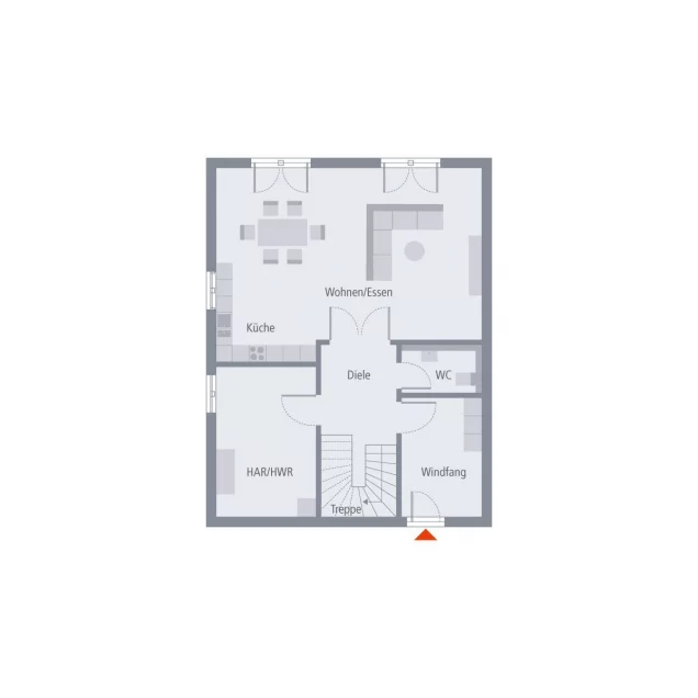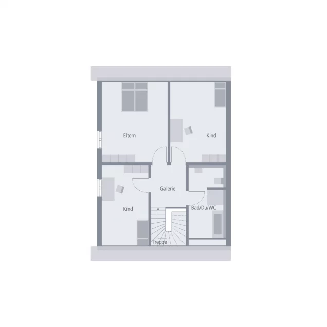 Zeitlos-elegant und durchdacht bis ins kleinste Detail, das ist unser Doppelhaus 10. Hier stehen Baufamilien zwei identische Wohneinheiten zur Verfügung. Diese erstrecken sich über jeweils zwei Etagen und verfügen über eine Wohnfläche von rund 142 m2. Im Erdgeschoss sorgt ein praktischer Windfang dafür, dass keine Zugluft durch die Haustür in die Wohnräume gerät. Hier ist der perfekte Ort für Garderobe und Schuhregal. Durch die Diele geht es weiter in den Wohn-Ess-Bereich mit integrierter Küchenzeile. Der knapp 40 m² große Raum ist der perfekte Treffpunkt für die ganze Familie. Von hier ist auch ein Zugang zum Garten möglich. Im Erdgeschoss befinden sich zudem ein Hausanschlussraum sowie ein Gäste-WC. Das Obergeschoss ist in vier Räume unterteilt: ein Elternschlafzimmer, zwei Kinderzimmer sowie ein Bad. Das Satteldach und die damit verbundenen Dachschrägen sorgen für eine angenehme Gemütlichkeit und bieten dank einer Stockhöhe von 1 m noch ausreichend Raum, um Sideboard und Co. zu stellen.